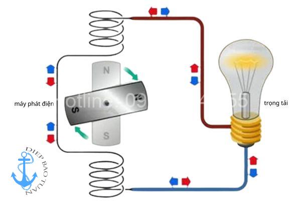 3. Tạo thành dòng điện chạy trong dây dẫn, dòng điện này liên tục đổi chiều theo sự quay của trục máy phát.